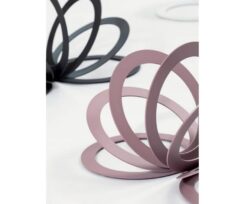Revistero Fan Bontempi, diseñado por Roberto Giacomucci. Curioso y espectacular revistero con circunferencias que dan idea de abrirse o cerrase, depende del punto de vista. Realizado en acero blanco, arena, rojo viejo, celeste, verde claro, amarillo, rojo, azul, marrón oscuro, antracita o negro, como acabados estándar, y también en plata natural, oro o negro brillo, con un pequeño incremento.
